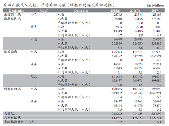Source: DGE. 2018 Tourism Annual Handbook http://www.entreprises.gouv.E. Inbound tourism includes non-monetary indicators such as the number of inbound day tourists and overnight tourists, source of tourists, number of overnight stays, length of stay, and travel motivation. Inbound tourism data comes from the Foreign Visitors Survey (EVE) jointly completed by DGE and the Bank of France. The sampling survey is conducted when tourists leave France, and 60,000 samples are drawn every quarter.