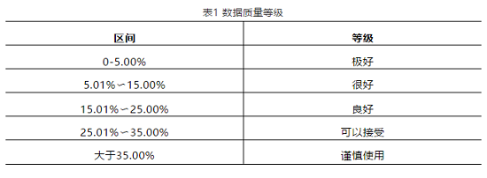 ③ Data quality control. Surveys targeting samples rather than populations are prone to sampling variability. Standard deviation, coefficient of variation, and confidence interval are often used as criteria for judging data quality. Canada calculates the coefficient of variation based on the assumption that sample errors follow a normal distribution, divides data quality into five levels, and marks the corresponding levels in the published data, see Table 1.